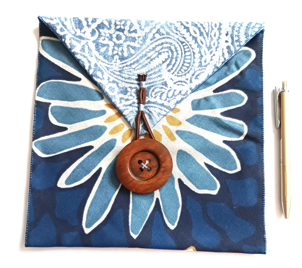 Indeed, the timing was perfect. A friend was getting married. I had never known any friend or acquaintance who tied the knot before. Both this friend and her to-be husband were highly creative, down-to-earth individuals. By some alchemy I would be at a loss to explain, my imagination effortlessly shaped the fabric into a gift for them: a pouch designed to hold wedding bands and vows.